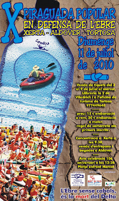 La Plataforma en Defensa de l'Ebre (PDE) ha decidit aprofitar la celebració de la X Piraguada Popular, que tindrà lloc el pròxim 11 de juliol entre Xerta i Tortosa, per elevar el caràcter reivindicatiu d'aquesta jornada lúdica. El portaveu de la PDE, Manolo Tomàs, va explicar que insistiran en la necessitat de fixar un cabal ecològic per al tram final de l'Ebre, tenint en compte que es tracta d'una festa amb què els antitransvasament sempre han reclamat aigua de qualitat i un bon estat de conservació per als rius. Els tiquets ja es poden adquirir al mercat de Tortosa, a l'oficina de turisme i a la llibreria La 2 de Viladrich, a un preu de 15 euros per a embarcació de rem, i de 20 euros per a embarcació de motor.